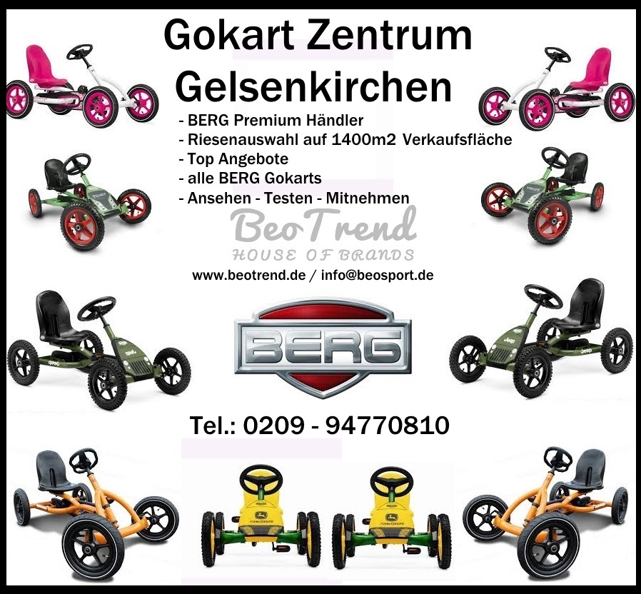 » Eine Riesenauswahl der verschiedenen BERG Gokartmodelle steht für Sie zum Testen bereit. BeoTrend in Gelsenkirchen.